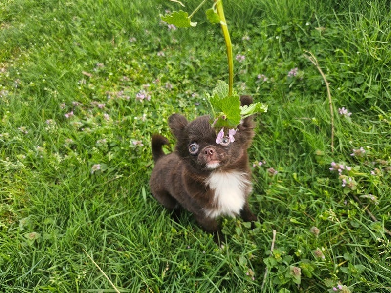 Superbe chihuahua poils longs chocolat avec un bon caractère, très affectueux certificat de bonne santé tout est ok